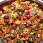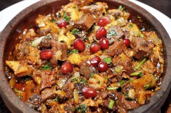 Sült sertéshús cserépedényben, sült krumpli, grúz fűszerek
